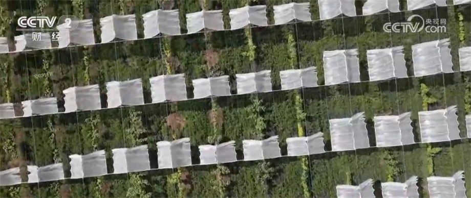 總臺央視記者 金荷淼:這里是陜西楊凌的一處獼猴桃產業(yè)園,我所在的位置是一個黃肉獼猴桃的標準化種植基地,可以看到現(xiàn)場是采用了一個壟上栽培的方式,保留了比較寬的行距,能夠有利于排水。而且我們發(fā)現(xiàn),每一支主干是分出來兩根藤蔓,在藤蔓之上做了一個這樣的水平棚架,水平棚架的好處就在于能夠保證每一個獼猴桃的果實都能夠接受同等程度的水分和光照,從而使果實的大小質量均勻統(tǒng)一。