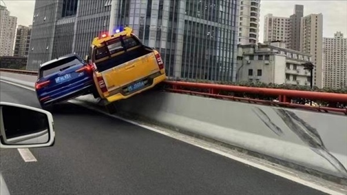 ·5月24日下午,上海內(nèi)環(huán)高架近漕溪立交段兩車碰撞,致其中一輛工程車騎跨在高架護(hù)欄上。上海交警回應(yīng):涉事兩車在行駛過(guò)程中存在互相“斗氣”行為。目前兩車駕駛員已被警方控制,警方將根據(jù)調(diào)查結(jié)果依法作出嚴(yán)肅處理。