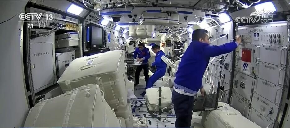 2022年6月5日,空間站迎來了神舟十四號(hào)陳冬、劉洋、蔡旭哲三名航天員入駐。隨著問天實(shí)驗(yàn)艙、夢(mèng)天實(shí)驗(yàn)艙的先后到來,他們?cè)谌蝿?wù)期間迎來了中國(guó)空間站“T”字基本構(gòu)型組裝完成的歷史性時(shí)刻,開啟中國(guó)人太空“三居室”時(shí)代。