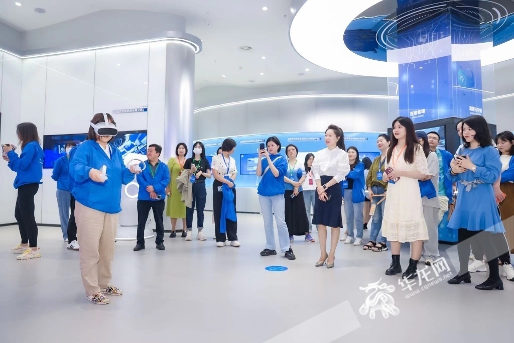 記者們前往玉泉湖數(shù)字文旅產(chǎn)業(yè)城數(shù)字經(jīng)濟展示中心。華龍網(wǎng)-新重慶客戶端 歐武夷 攝