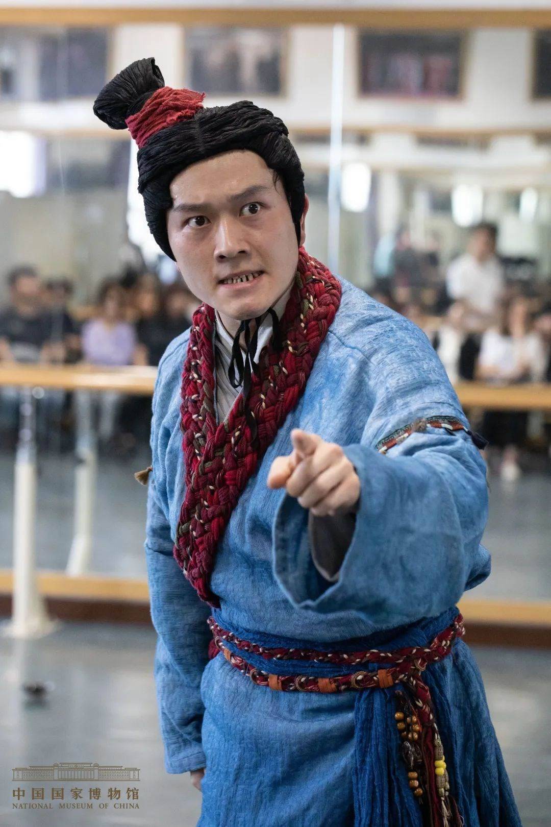 著力還原的人物服飾、來(lái)自經(jīng)典古籍中的故事靈感,讓觀眾在觀演過程中沉浸在遙遠(yuǎn)的中國(guó)故事中。舞臺(tái)上時(shí)而眼花繚亂的市井百戲,時(shí)而正襟危坐的朝堂激辯,時(shí)而幽默的對(duì)白,時(shí)而高昂的唱詞,引發(fā)臺(tái)下觀眾的陣陣掌聲和叫好聲。傳統(tǒng)的雜耍、說唱、戲曲等表演藝術(shù)與現(xiàn)代話劇、歌劇、音樂、舞蹈、相聲、說唱等藝術(shù)融合,將東漢說唱藝術(shù)中的詼諧和其蘊(yùn)含的樂觀精神,通過年輕演員傳承、復(fù)活、展現(xiàn)給觀眾,讓靜謐兩千年的文物在中國(guó)國(guó)家博物館的舞臺(tái)活起來(lái)。