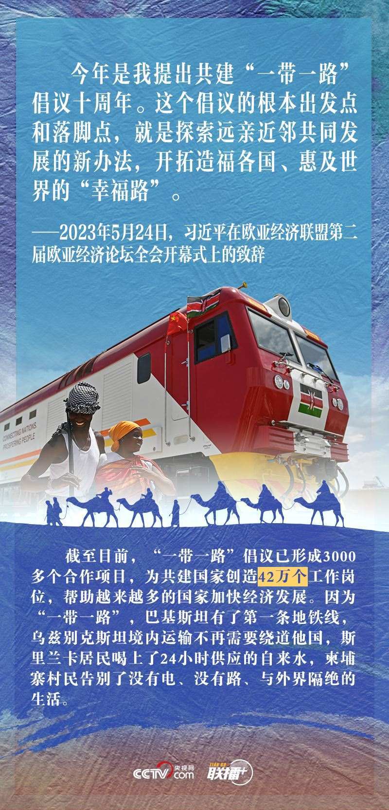 “今年是我提出共建‘一帶一路’倡議十周年。這個(gè)倡議的根本出發(fā)點(diǎn)和落腳點(diǎn),就是探索遠(yuǎn)親近鄰共同發(fā)展的新辦法,開拓造福各國、惠及世界的‘幸福路’?!?月24日,習(xí)近平主席在出席歐亞經(jīng)濟(jì)聯(lián)盟第二屆歐亞經(jīng)濟(jì)論壇全會(huì)開幕式并致辭時(shí)指出。