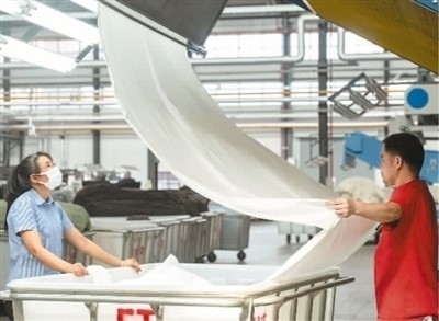 近日,在廣西梧州岑溪市大業(yè)鎮(zhèn)的西部(岑溪)創(chuàng)業(yè)園泰森新紡織產(chǎn)業(yè)集聚區(qū)某車間,染整智能生產(chǎn)線開足馬力高效作業(yè),工人們在崗位上忙碌,呈現(xiàn)出一片熱火朝天的生產(chǎn)景象。岑溪泰森項目以數(shù)字化轉(zhuǎn)型為主要發(fā)展方向,打造數(shù)字化轉(zhuǎn)型“5G+智慧工廠”行業(yè)新標(biāo)桿。 何華文攝(人民視覺)