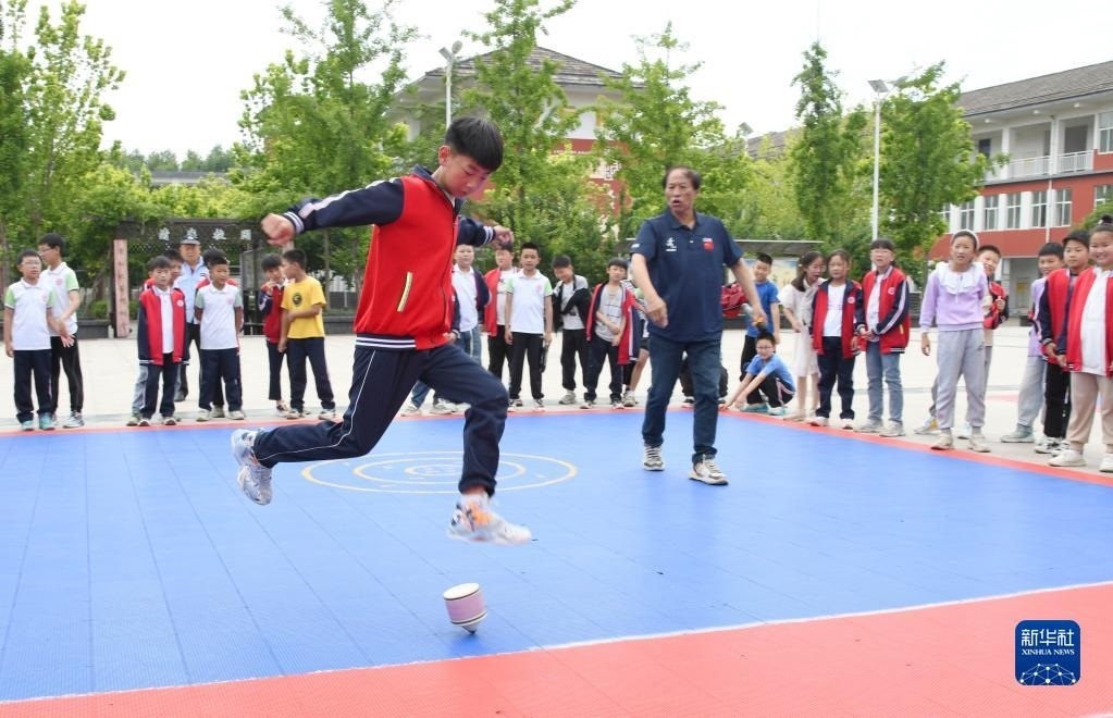 5月30日,河南省濟源市梨林鎮(zhèn)中心小學(xué)的學(xué)生參加校園足螺比賽。 新華社發(fā)(苗秋鬧攝)