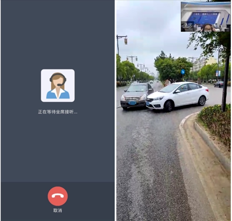 當(dāng)事人點擊“視頻報警”按鈕后,呼叫等待公安交管部門接警人員接聽,接警人員接聽后進入雙方視頻通話。