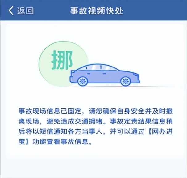 接警人員完成證據(jù)固定和信息采集后,"交管12123"APP將推送撤離事故現(xiàn)場提示信息,當(dāng)事人應(yīng)當(dāng)及時撤離,避免交通擁堵。