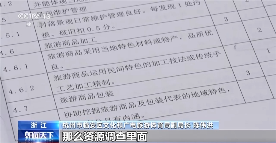 杭州市臨安區(qū)文化和廣電旅游體育局副局長 陳偉洪:資源調(diào)查是占三分,那么資源調(diào)查里面我們又要細(xì)分一下的,我們有要求,最起碼你這個村莊里面,比如說至少是(調(diào)查)60戶,這個是肯定的。