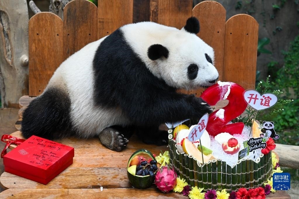 當(dāng)日,大熊貓寶寶“升誼”迎來兩歲生日,動(dòng)物園為它準(zhǔn)備了特別的生日大餐,眾多民眾前往動(dòng)物園為它慶生?!吧x”是中國(guó)旅馬大熊貓“興興”和“靚靚”生下的第三只寶寶,出生于2021年5月31日中馬建交47周年紀(jì)念日當(dāng)天。新華社記者 朱煒 攝
