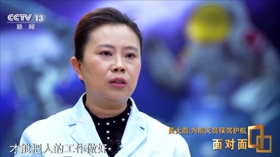 吳大蔚:再不想吃也要好好吃,好好吃好了才能有勁兒好好干活。所以航天員支持中心跟其他支持中心不太一樣,它對(duì)的是一個(gè)生命,我不是對(duì)著一臺(tái)機(jī)器,看它的指標(biāo)就可以了,遠(yuǎn)遠(yuǎn)不是,是要投入大量的感情,把他當(dāng)成親人一樣,真正用心去做,才能把人的工作做好。