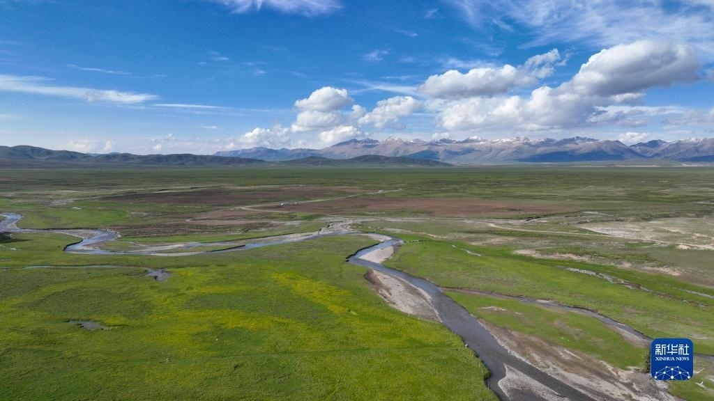 這是6月9日在青海省黃南藏族自治州澤庫縣拍攝的高原草原(無人機(jī)照片)。