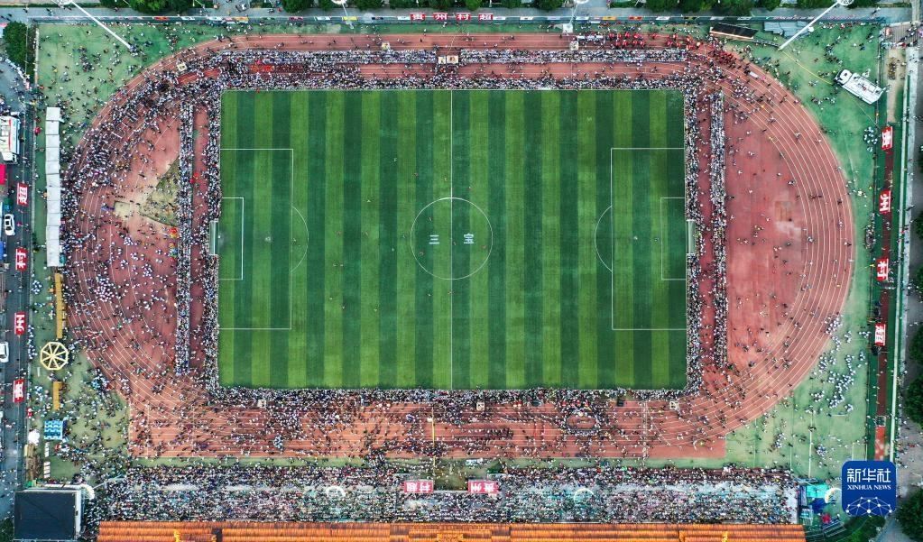 6月9日拍攝的貴州“村超”足球比賽現(xiàn)場(無人機(jī)照片)。