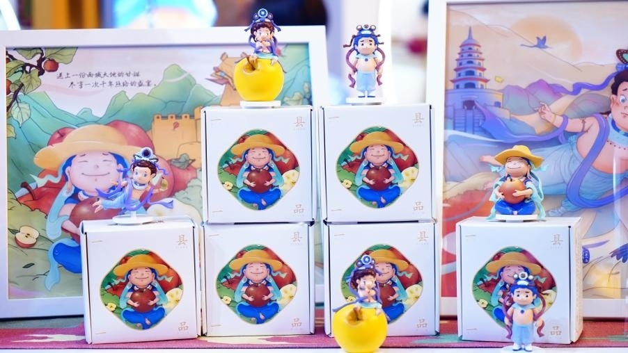 在新疆展館,數(shù)字文創(chuàng)IP“龜茲寶寶”發(fā)揮著具有高度代表性的文化紐帶作用,推動(dòng)粵疆兩地文化交流與交融。華昊文化科技集團(tuán)董事長盧曉鴻介紹,“龜茲寶寶”是以龜茲石窟壁畫為靈感,結(jié)合現(xiàn)代化美學(xué)而成的數(shù)字IP。