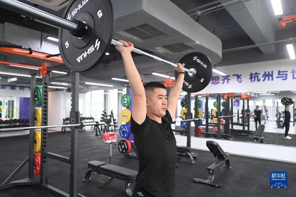 6月16日,杭州亞運(yùn)村健身中心健身教練在綜合器械區(qū)展示。據(jù)了解,健身中心集合了營(yíng)養(yǎng)管理、體能康復(fù)、疲勞恢復(fù)、運(yùn)動(dòng)心理等各領(lǐng)域的專(zhuān)業(yè)教練,將根據(jù)運(yùn)動(dòng)員實(shí)際情況,為運(yùn)動(dòng)員提供賽事服務(wù)保障。