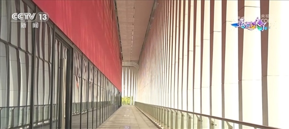 總臺央視記者 任梅梅:現(xiàn)在我們就來到了手球館室外的二層平臺,進(jìn)入了“水?!钡膬?nèi)部,這一條條垂著的“水?!逼鋵?shí)不僅僅是裝飾品,更有著實(shí)際的作用,它們就像百葉窗一樣,能夠起到隔熱的效果,另外還可以減少眩光,提高室內(nèi)視覺的舒適度。