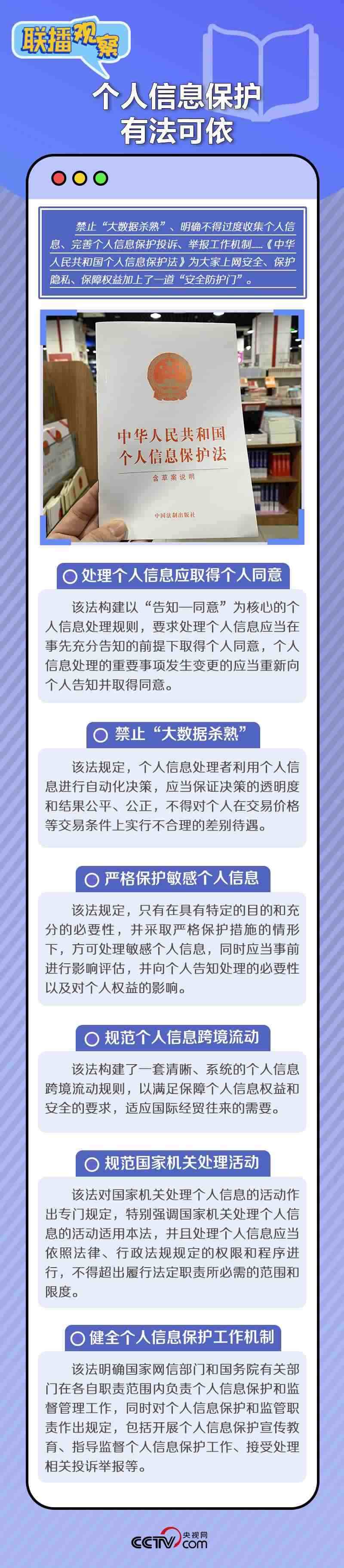 互聯(lián)網(wǎng)的普及,讓個人信息保護成為廣大網(wǎng)民關(guān)心的問題。習近平總書記始終把關(guān)乎人民幸福感、安全感的個人信息保護放在心上,明確要求保障個人信息安全,維護公民在網(wǎng)絡空間的合法權(quán)益。近年來,我國在相關(guān)立法保障方面做了哪些努力?個人信息保護取得哪些成果?央視網(wǎng)《聯(lián)播觀察》帶您一起了解。
