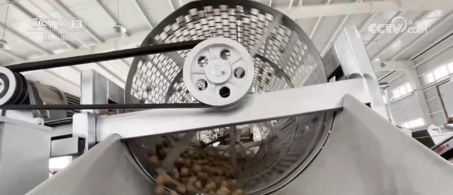 從田間地頭集中收購的青皮核桃會被送往加工車間,通過現(xiàn)代化機器設備首先將核桃外層的青皮脫離,此時黃色的果殼就會顯現(xiàn)。然后進行清洗去除掉核桃外殼的雜質(zhì),緊接著就是利用烘干設備將核桃烘干,之后再利用分選設備將大小不均的核桃進行篩選分類,最后一步就是將分類好的成品核桃打包裝箱銷往各大市場。