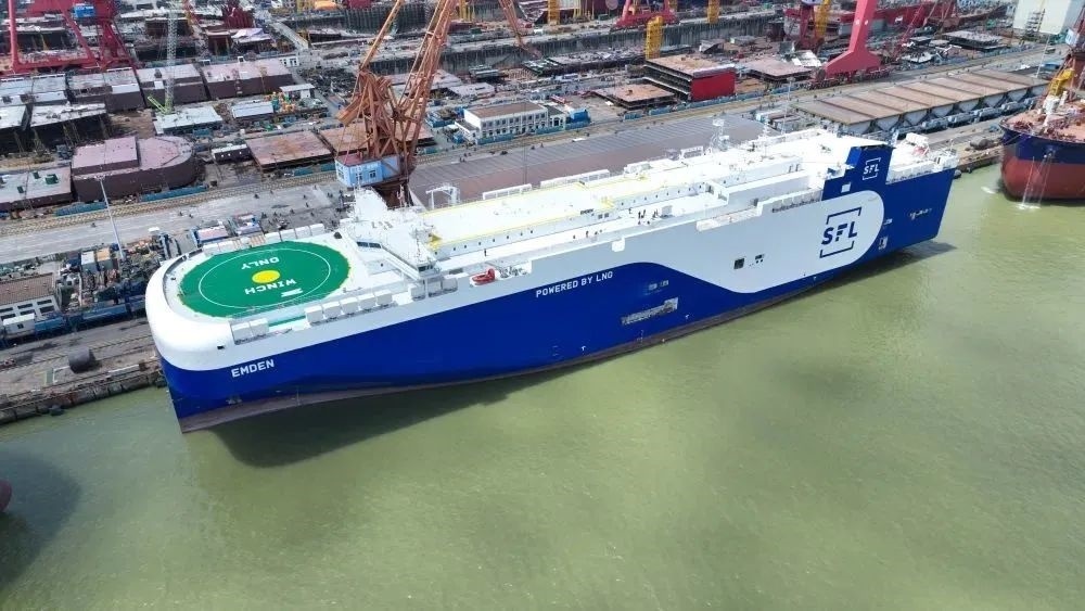 2023年9月12日,廣船國際建造的7000車雙燃料汽車運輸船交付(無人機照片)。(中國船舶集團廣船國際供圖)