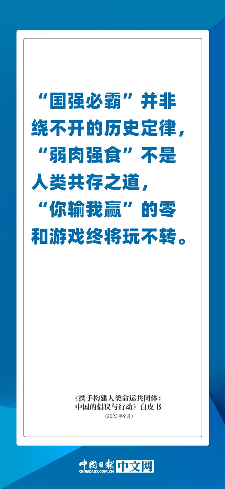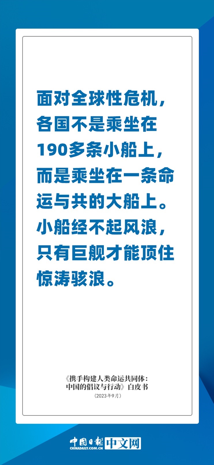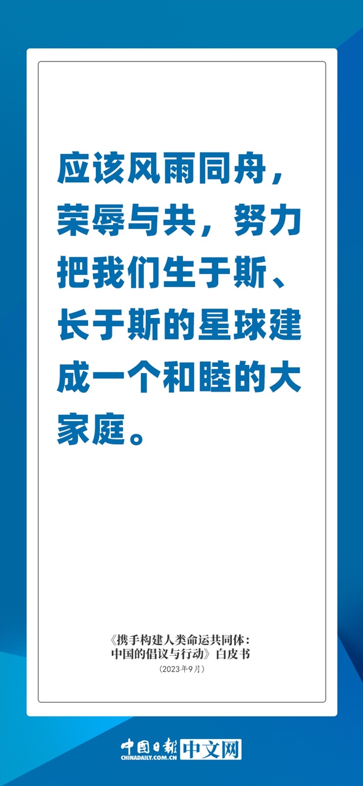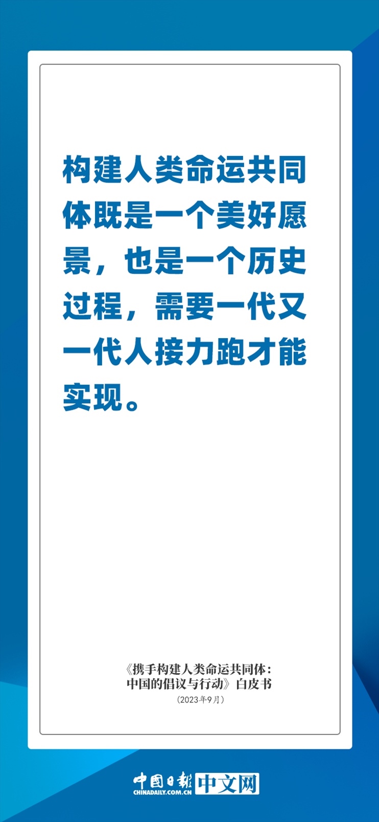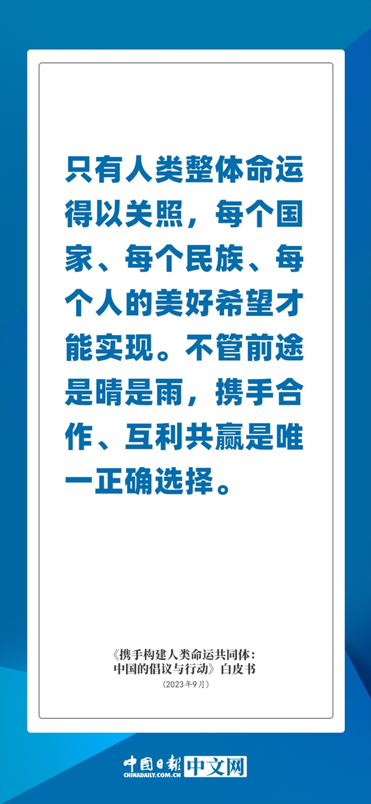 國(guó)務(wù)院新聞辦公室于2023年9月26日發(fā)布《攜手構(gòu)建人類命運(yùn)共同體:中國(guó)的倡議與行動(dòng)》白皮書,發(fā)人深思催人奮進(jìn)。