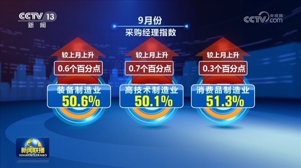 央視網(wǎng)消息(新聞聯(lián)播):中國物流與采購聯(lián)合會、國家統(tǒng)計局服務(wù)業(yè)調(diào)查中心今天(9月30日)公布,9月份中國制造業(yè)采購經(jīng)理指數(shù)重回50%以上的擴張區(qū)間,經(jīng)濟恢復(fù)發(fā)展向好態(tài)勢明顯。