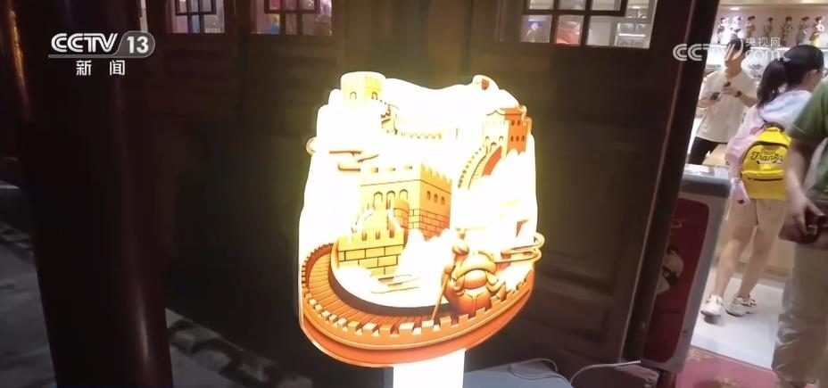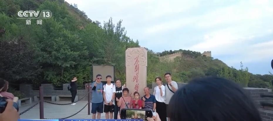 除了觀賞之外,八達(dá)嶺長(zhǎng)城還為游客提供了豐富的消費(fèi)體驗(yàn)。在文化街區(qū)里,正在上演《夢(mèng)回長(zhǎng)城,八方來鶴》為主題的演出,游客們可以和京劇、地方歌舞的表演者互動(dòng)。絢爛的燈光表演則為古老的長(zhǎng)城增添了不少現(xiàn)代感與時(shí)尚感。穿上漢服,買一面國(guó)旗,品嘗一下長(zhǎng)城的文創(chuàng)雪糕,市集小店里洋溢著濃濃的煙火氣。