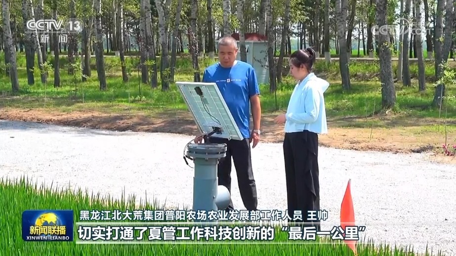 在北大荒普陽農場第四管理區(qū)的水稻種植地塊,一套集災情氣象、土壤墑情、病蟲害和苗情長勢監(jiān)測于一體的農情監(jiān)測設備,正在24小時不間斷地對水稻生長進行全面監(jiān)控。