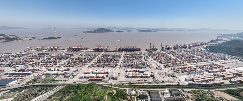 鳥(niǎo)瞰寧波舟山港穿山港區(qū)(無(wú)人機(jī)照片,5月9日攝)。新華社記者 翁忻旸 攝