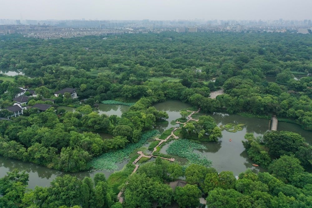 西溪國(guó)家濕地公園(無(wú)人機(jī)照片,6月17日攝)。新華社記者 黃宗治 攝