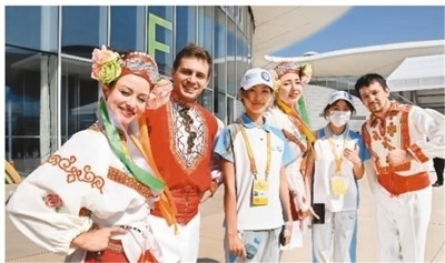 近日,上海合作組織國(guó)際投資貿(mào)易博覽會(huì)在青島舉行,促進(jìn)了國(guó)際間科技、經(jīng)濟(jì)和文化交流。圖為來自白俄羅斯的客人與博覽會(huì)志愿者合影。