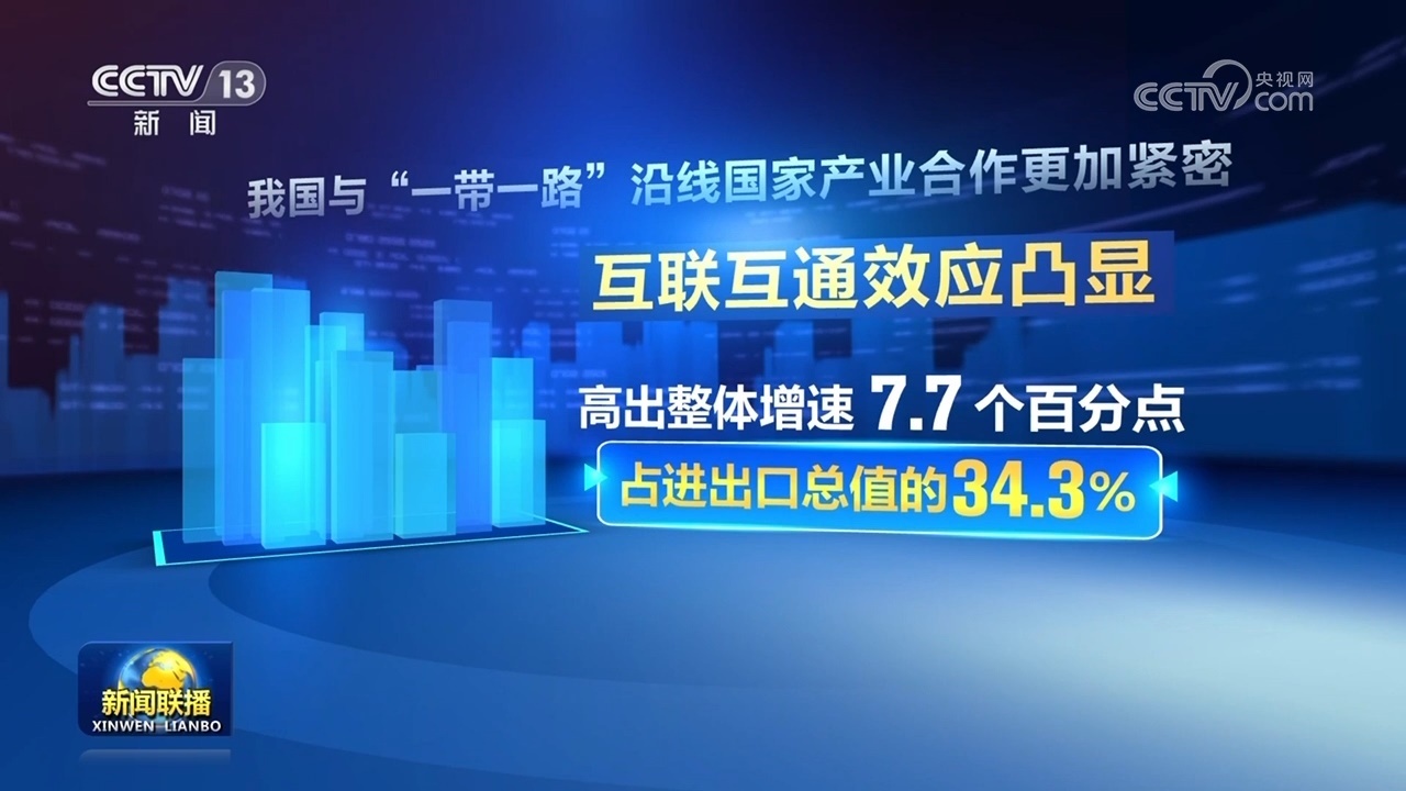 我國(guó)與“一帶一路”沿線(xiàn)國(guó)家產(chǎn)業(yè)合作更加緊密,互聯(lián)互通效應(yīng)凸顯,進(jìn)出口同比增長(zhǎng)9.8%,高出整體增速7.7個(gè)百分點(diǎn),占進(jìn)出口總值的34.3%。