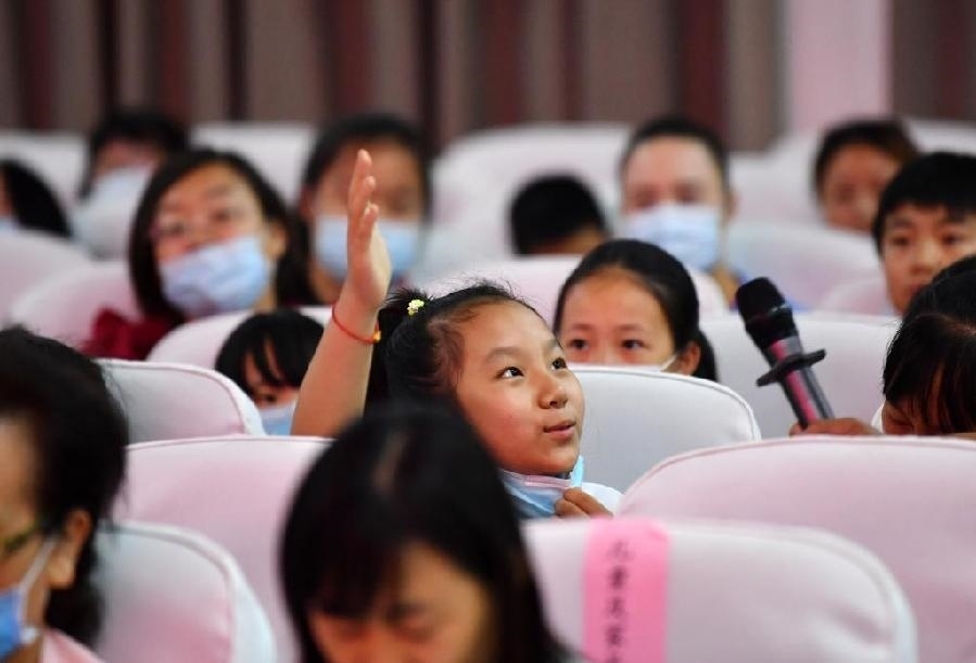 在天津市北辰區(qū)青光村黨群服務(wù)中心,學(xué)生在一場(chǎng)安全教育活動(dòng)上回答問(wèn)題。新華社記者 李然 攝