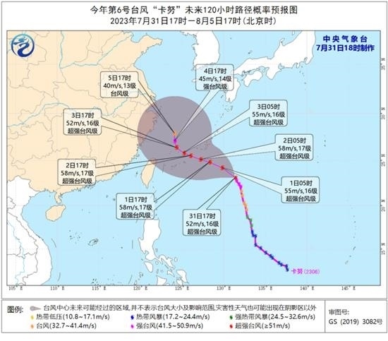 8月1日開(kāi)始,受副熱帶高壓變?nèi)?、形態(tài)改變的影響,“卡努”的引導(dǎo)氣流將變得不太清晰,其移速也將減緩。最新預(yù)報(bào)顯示,“卡努”將以每小時(shí)15-20公里的速度向西北方向移動(dòng),強(qiáng)度還將有所增強(qiáng),8月2日夜間移入東海,逐漸轉(zhuǎn)向偏北方向移動(dòng),移速明顯減慢。