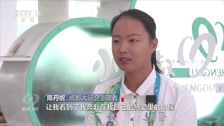 陳丹妮:“參與志愿服務(wù)的每一天我沒有覺得特別累,這是成都大運(yùn)會(huì)帶給我的一次體驗(yàn),讓我看到了我奔赴在自己的熱愛里的時(shí)候,那種熱愛帶給我的力量,看到他們的笑容,這一刻所有人都會(huì)覺得所有的辛苦都很值得。”