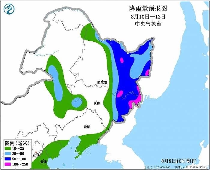 降雨預(yù)報(bào):10-12日,受“卡努”影響,遼寧東部有中到大雨,吉林東部、黑龍江北部和中東部等地有大到暴雨,其中吉林東北部、黑龍江東南部等局地大暴雨;上述地區(qū)累積雨量30~60毫米,局地可達(dá)120~200毫米。最大小時(shí)雨強(qiáng)30~50毫米,局地可達(dá)60毫米以上。主要降雨時(shí)段為10日夜間至12日白天。