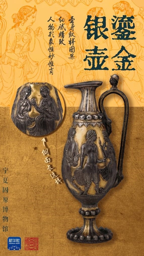 鎏金銀壺有何特殊之處?這件波斯王朝的酒具,是在薩珊時(shí)代的巴克特里亞地區(qū)制造而成,距今已有1500年歷史,壺身上的雕刻以連環(huán)畫的形式講述了希臘神話故事里的內(nèi)容?!蚌探疸y壺整體造型融合了波斯薩珊金銀器風(fēng)格、希臘風(fēng)格和巴克特里亞當(dāng)?shù)卦??!睂幭墓淘┪镳^副館長張強(qiáng)介紹,在現(xiàn)階段出土文物中,鎏金銀壺不僅在中國只此一件,在世界現(xiàn)存的薩珊金銀器中亦屬罕見。