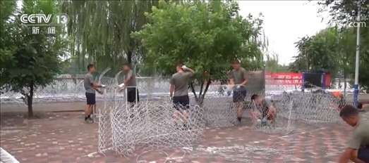 針對(duì)當(dāng)前及未來幾天天津氣象變化,有效應(yīng)對(duì)大清河兩側(cè)堤壩可能出現(xiàn)的險(xiǎn)情,官兵們采取動(dòng)態(tài)輪換的方式,除了巡堤排險(xiǎn)就是制作防洪石籠。像這樣40米一卷的鉛絲網(wǎng)片,他們已經(jīng)用了幾百卷,做好的石籠有500多個(gè)。