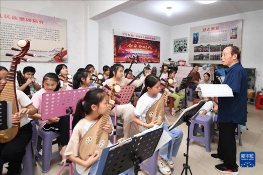 從小熱愛音樂的李舒尤在村里開起了樂器公益課堂——“舒尤樂坊”,利用周末和寒暑假免費(fèi)教授孩子們各類樂器。為了吸引學(xué)生,他自費(fèi)給鎮(zhèn)上的小學(xué)捐贈了40把二胡。8年間,公益課堂慢慢壯大,今年暑期,共有90多名學(xué)生在舒尤樂坊學(xué)習(xí)。