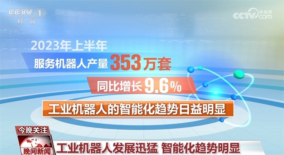 據(jù)了解,我國工業(yè)機器人銷量已占全球的一半以上,連續(xù)10年居世界首位。2023年上半年,工業(yè)機器人產(chǎn)量達到了22.2萬套,同比增長5.4%,服務機器人產(chǎn)量353萬套,同比增長9.6%。同時,工業(yè)機器人的智能化趨勢日益明顯。