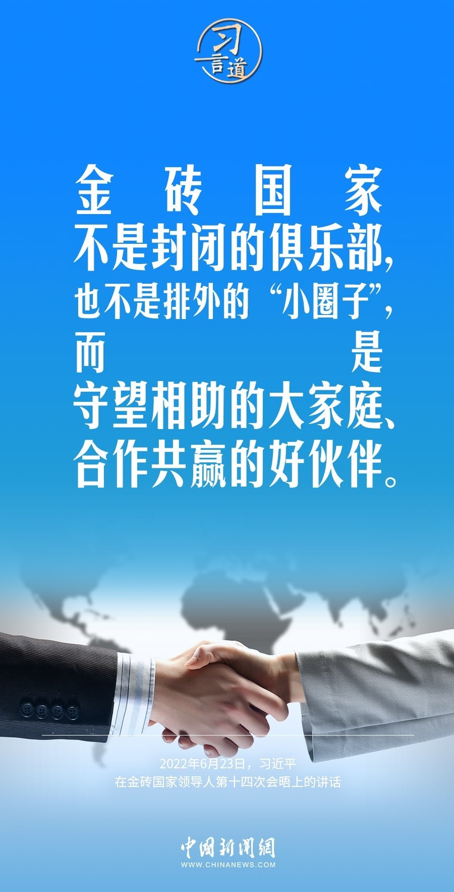 中國(guó)國(guó)家主席習(xí)近平將于8月21日至24日出席在南非約翰內(nèi)斯堡舉行的金磚國(guó)家領(lǐng)導(dǎo)人第十五次會(huì)晤并對(duì)南非進(jìn)行國(guó)事訪問。對(duì)于金磚國(guó)家合作機(jī)制,習(xí)近平主席多次在不同場(chǎng)合發(fā)表重要論述,他指出,金磚國(guó)家是守望相助的大家庭、合作共贏的好伙伴。