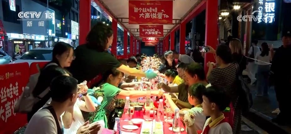 這個暑期,貴州貴陽天氣涼爽,來這里旅游還可以感受一下貴陽云巖區(qū)的長街宴。近60米的長街宴一字排開,游客圍坐在長桌邊,品嘗當?shù)氐姆沁z美食“絲娃娃”。這是一種貴陽傳統(tǒng)小吃,別名素春卷,已有百年歷史。