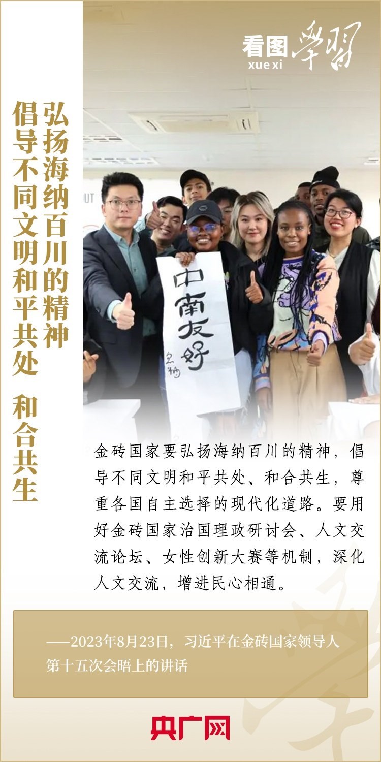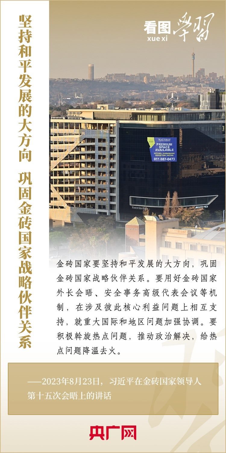 當?shù)貢r間8月23日,習(xí)近平主席出席金磚國家領(lǐng)導(dǎo)人第十五次會晤并發(fā)表重要講話,強調(diào)金磚國家要秉持開放包容、合作共贏的金磚精神,以金磚責任應(yīng)對共同挑戰(zhàn),以金磚擔當開創(chuàng)美好未來。一起來學(xué)習(xí)!