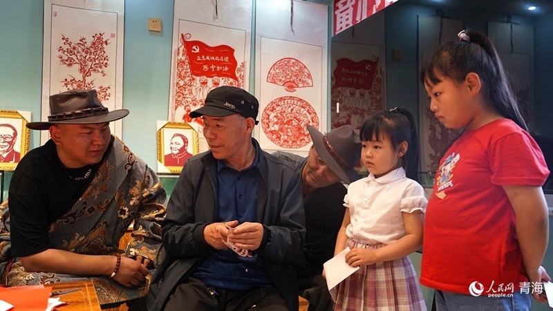 “紅紙對(duì)折,再對(duì)折,先剪出大概輪廓,再剪蝴蝶的觸角,剪刀要慢……”青海省海南藏族自治州貴德縣河陰鎮(zhèn)歇春園社區(qū)紅石榴之家內(nèi),剪紙藝人楊成君正帶領(lǐng)社區(qū)幾名小孩學(xué)習(xí)剪紙,幾位藏族居民也在旁邊饒有興趣地旁觀。