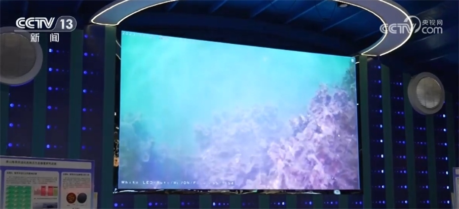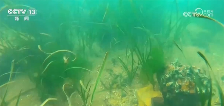 河北省近海生態(tài)修復(fù)工程技術(shù)研究中心負(fù)責(zé)人 張振海:現(xiàn)在看到的這個畫面,是我們“貝藻礁生態(tài)系統(tǒng)重構(gòu)技術(shù)”的實時景象,過去海底不是這樣的,海底整個是一片荒漠化的,在貝藻礁生態(tài)系統(tǒng)創(chuàng)新以后,海藻逐漸茂盛起來,海洋生物物種增加了十幾種,海洋生物總量提高了四十倍以上。