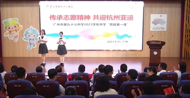 8月31日,廣州市第九十七中學(xué)開(kāi)展以“傳承志愿精神、共迎杭州亞運(yùn)”為主題的開(kāi)學(xué)“思政第一課”。