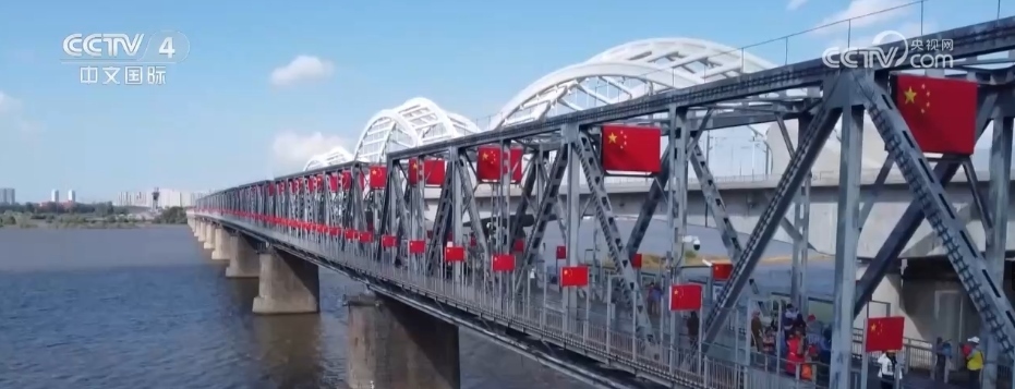 假日期間,擁有100多年歷史的松花江濱洲鐵路橋,在800面五星紅旗的裝飾下,成了眾多市民游客抒發(fā)愛國(guó)情懷的“祝愿橋”。