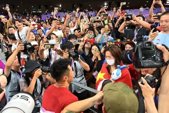 還有對(duì)老將的尊重。自古英雄出少年,杭州亞運(yùn)會(huì)上的“00后”成為了主角,但老將們同樣風(fēng)采不減,他們用競(jìng)技場(chǎng)上的表現(xiàn)告訴觀眾,他們?nèi)栽谄床?。馬龍、張亮、丘索維金娜、鞏立姣、汪順……成績(jī)不是唯一,登場(chǎng)便是傳奇。觀眾對(duì)老將們的支持,融化在掌聲與吶喊里。