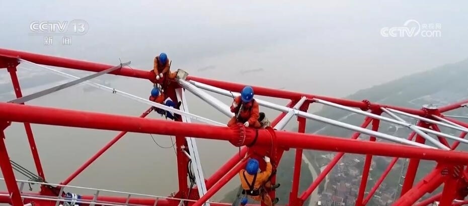 假日期間,湖北6項特高壓工程建設不停工,近3000人堅守崗位。在武漢—南昌雙回1000千伏線路工程現(xiàn)場,百名施工人員在進行跨江塔最后的塔材安裝。現(xiàn)場通過建立高空微型氣象站和可視化監(jiān)控指揮中心,運用數(shù)字化系統(tǒng),實時對作業(yè)過程動態(tài)修正,確保高空人員安裝的精準性和安全性。