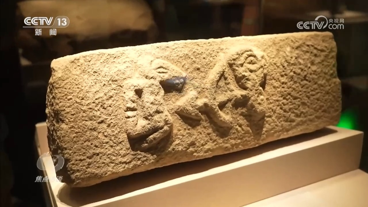 龜甲出土于河南省漯河市舞陽縣賈湖遺址,當時遺址內(nèi)發(fā)現(xiàn)17例刻在龜甲、骨器上的符號,內(nèi)容都與占卜相關(guān),被稱為賈湖刻符。符號圖畫為我們揭開了祖先們當時的生活圖景。“人射馬石雕”出土于陜西榆林神木市石峁遺址,在距今約4000年前,先人們以浮雕的方式成圖,一人持弓箭射馬,弓、弦、箭一樣不少。