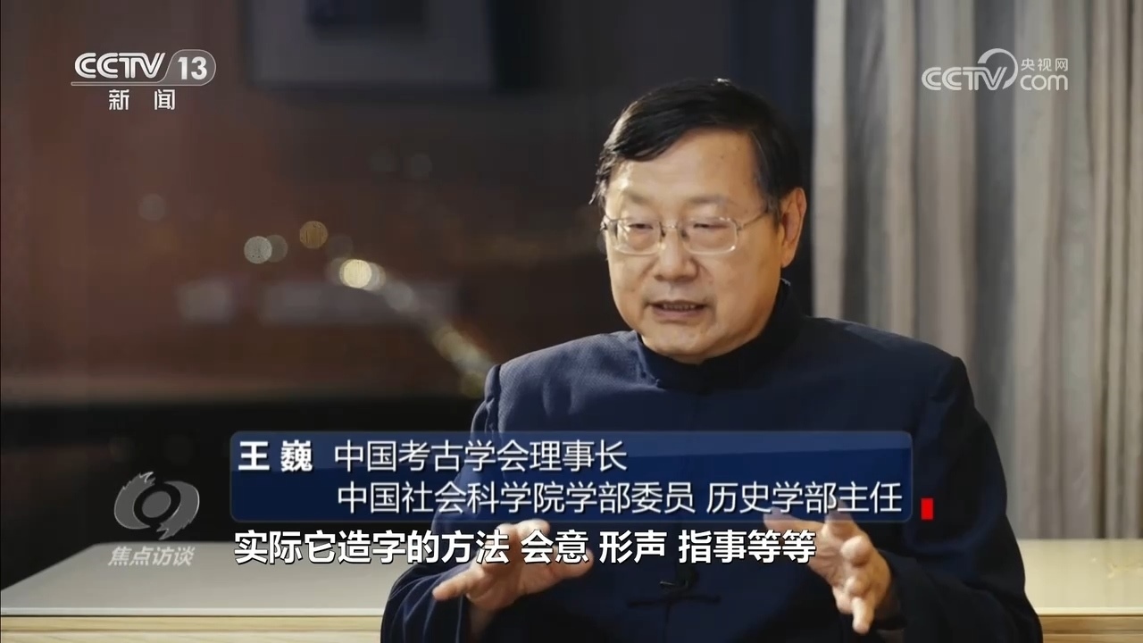 中國考古學(xué)會理事長、中國社會科學(xué)院學(xué)部委員、歷史學(xué)部主任王?。骸八胸S富的記載功能,商代的甲骨文是非常成熟的文字體系,它的造字方法、會意、形聲、指事等,它的造字方法已經(jīng)非常成熟了。正是因為有漢字,我們可以知道各個時代的政治、經(jīng)濟、文化、社會的記錄?!?/p>