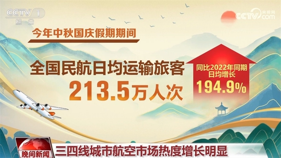 民航方面,今年中秋國慶假期期間,全國民航日均運輸旅客213.5萬人次,同比2022年同期日均增長194.9%。除了北京、上海、重慶、三亞等熱門城市航線火爆外,三四線城市的航空市場熱度增長明顯,直接帶動了當(dāng)?shù)氐慕?jīng)濟。