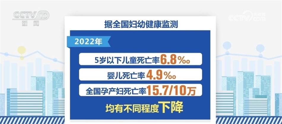 在婦幼健康方面,2022年我國孕產(chǎn)婦產(chǎn)前檢查率97.9%,產(chǎn)后訪視率96.5%。與上年比較,產(chǎn)前檢查率和產(chǎn)后訪視率均有提高。2022年全國住院分娩率為99.94%,基本實(shí)現(xiàn)全部住院分娩。據(jù)全國婦幼健康監(jiān)測,2022年,我國5歲以下兒童死亡率6.8‰,嬰兒死亡率4.9‰,全國孕產(chǎn)婦死亡率為15.7/10萬,均有不同程度下降。